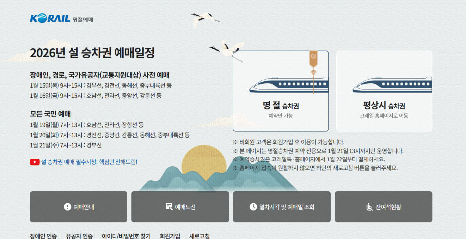 이러한 상황에서 2026 설날 KTX 기차표 예매 일정 총정리는