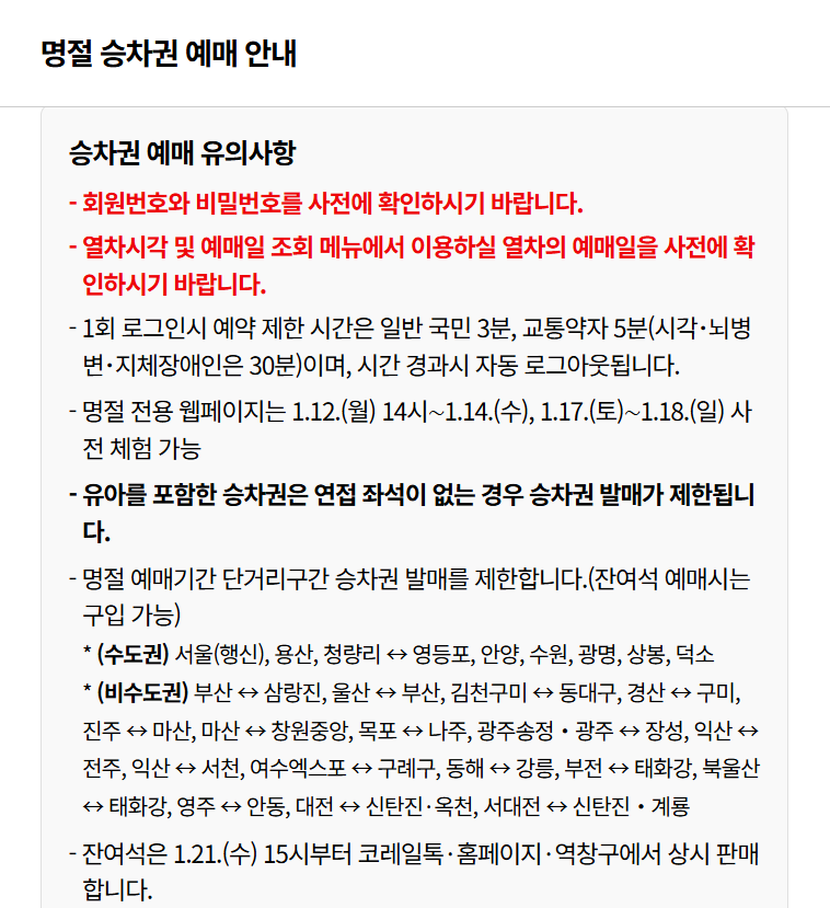 예매 구조, 날짜, 결제 기한, 잔여석 구매 방법까지 한 번에 정리해두면 설날 이동 준비가 훨씬 수월해집니다.